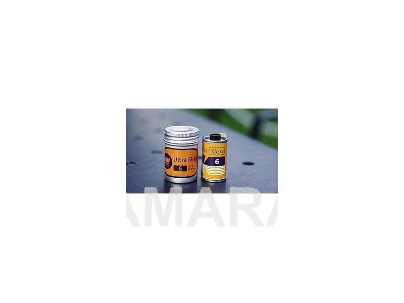 Ultra Slow 6 es una película para duplicados en blanco y negro, sensible a la luz azul y violeta. Se presenta en un bote de aluminio.