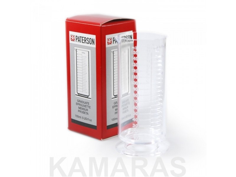 Probeta graduada para medición exacta de los líquidos, resistente a los productos fotoquímicos.