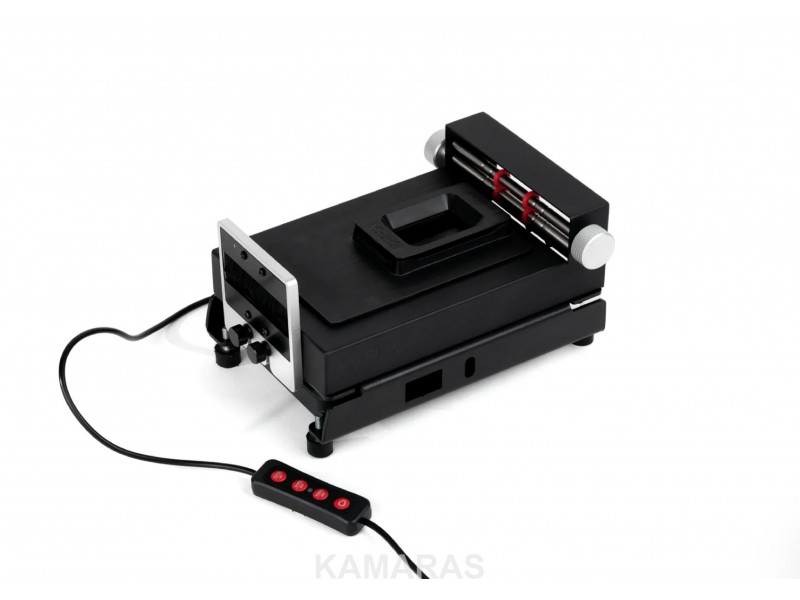 Tiene los mismos pies de goma que el Advancer, lo que le permite ajustar las esquinas para una película y una cámara perfectamente paralelas.