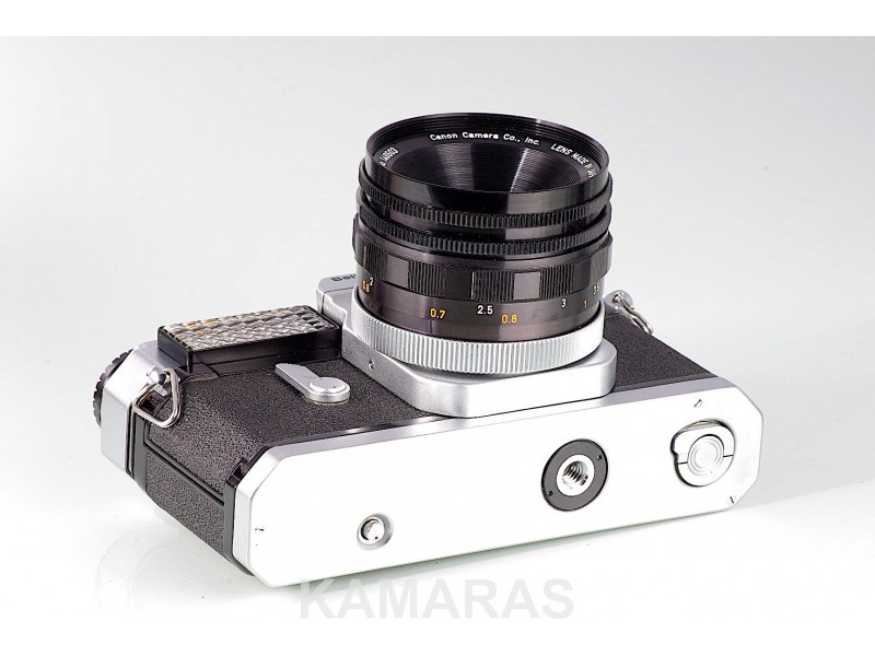 Esta rara CANON ha sido completamente revisada y comprobada, todo en ella funciona como es debido, tanto en el cuerpo como en el objetivo. El equipo presenta un aspecto inmejorable, con mínimas  señales de uso,  el objetivo limpio y transparente, diafragma limpio y enérgico; pentaprisma limpio y sin defectos, con el visor ultra limpio pantalla de enfoque super brillante. Sorprendentemente, la célula de selenio del fotómetro muestra actividad y este se encuentra perfectamente operativo.