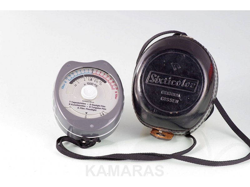 Fotometro termocolorimetro clasico con tecnologia de selenio (sin baterias), ofrece lecturas correctisimas de temperatura de color y grados de filtraje para peliculas luz dia y tungsteno, todo funciona correctamente, se suministra con estuche de piel original y cinta de nylon.