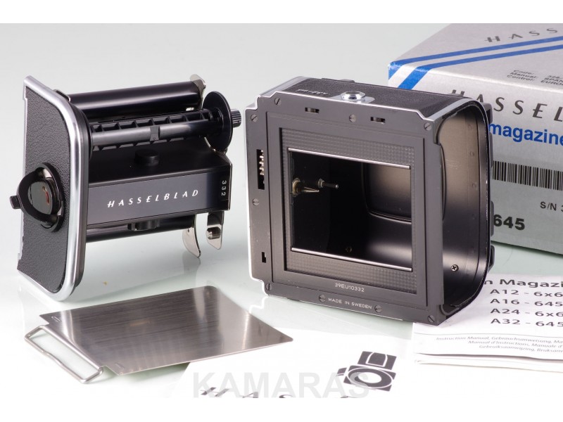 Chasis Hasselblad para 32 fotos de 6x6 con pelicula 220, puede hacer 16 fotos con pelicula 120.