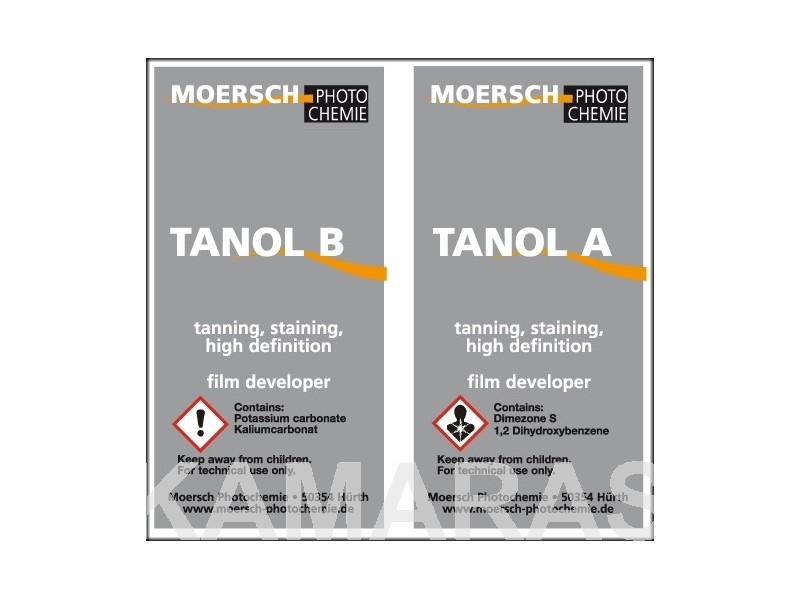 Moersch Tanol es un revelador de alta acutancia y de grano fino para película que reduce los haluros de plata de la emulsión mientras aporta un teñido como Pyro (PMK) sin los efectos nocivos ya que su formulación no contiene pyrogallol.