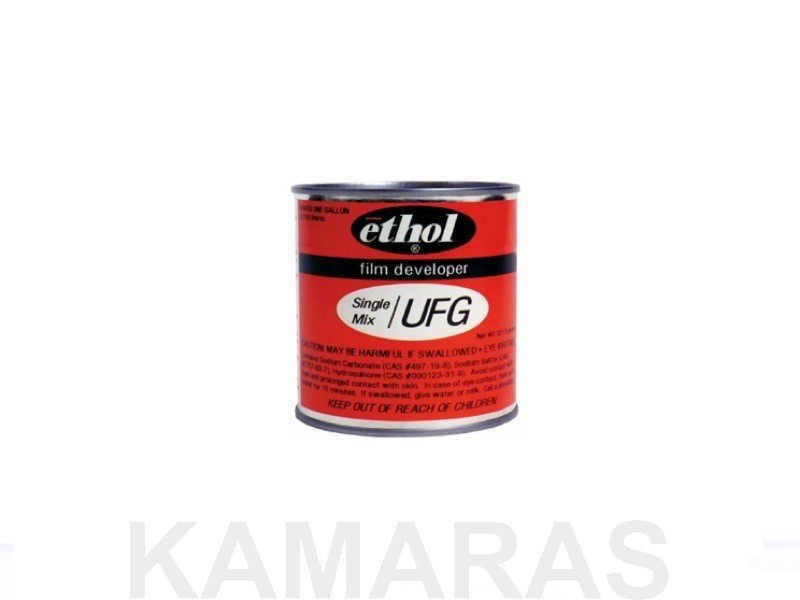 El "revelador milagroso" para revelar negativos con grano ultra-fino, contraste normal y alta acutancia. De acción suave, Ethol UFG (Ultra-Fine Grain) es una opción excelente cuando hay que resolver situaciones de iluminación problematica, debido a su latitud extremo de 7 diafragmas (3-1/2 diafragmas de subexposición y 3-1/2 diafragmas de sobreexposición). Para hacer una dilución de 950 ml.