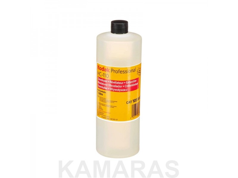 El Kodak HC-110 1 Litro es un revelador líquido rápido para usar con películas negativos de blanco y negro. Puede usarse una vez y desecharse tras cada uso, o reusarse usando el fijante HC-110. Las propiedades del HC-110 incluyen granos moderadamente finos, detalles completos de sombras, larga escala de densidad, amplio revelado y sin pérdidas de velocidad de filmación. Además, este revelador es apropiado para usar en procesos push. Puede diluirse directamente de concentrado o desde una solución de stock 1: 3.