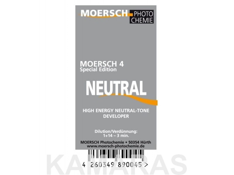 Un revelador líquido altamente concentrado para papeles fotográficos en blanco y negro, esta botella de 1 litro de revelador de papel neutro SE4 de Moersch Photochemie se caracteriza por su capacidad para producir impresiones con una gama tonal amplia y bien definida, un alto Dmax y una niebla base excepcionalmente baja. El concentrado se puede diluir 1:9 o 1:14, según los resultados deseados y el tiempo de desarrollo, y el concentrado también tiene una vida útil notablemente larga de 2 a 3 años cuando no se abre.